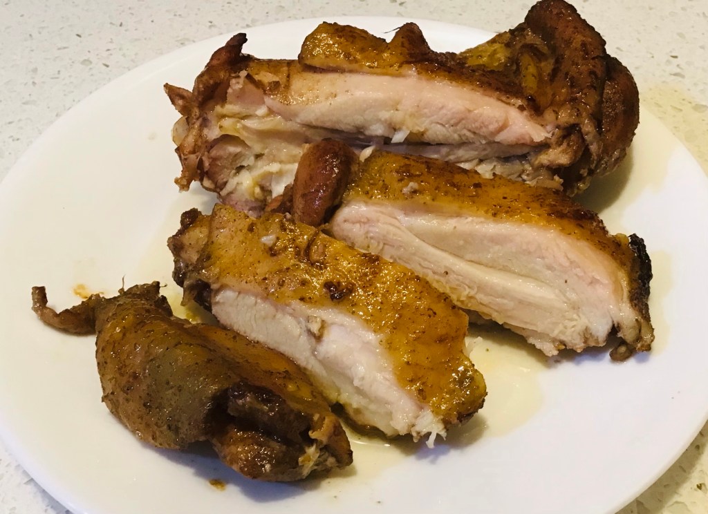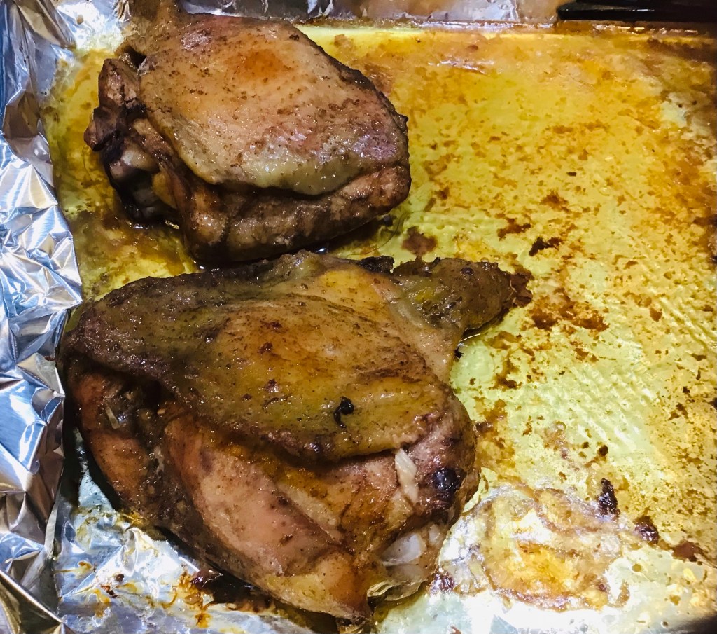 這道烤雞腿很重要的一步是調味均勻,尢其是鹽,否則就會有的地方太鹹有的地方不鹹。你可以考慮把所有乾的調味料放在一個有細孔的調味罐中,就像放在桌子的鹽罐,這樣灑調味料時,容易均勻。你若有自己喜歡的調味方式,也可以自由選擇。烤雞腿時,在低溫的情況下,雞肉表面熟了,但所有的水分會留在其中。把温度調高來使雞肉表面緊實上色時,因為烤的時間不長,部分水分會蒸發出來,裡面雞肉仍維持軟嫩多汁。我們全家都喜歡這道烤雞腿,希望你也喜歡。