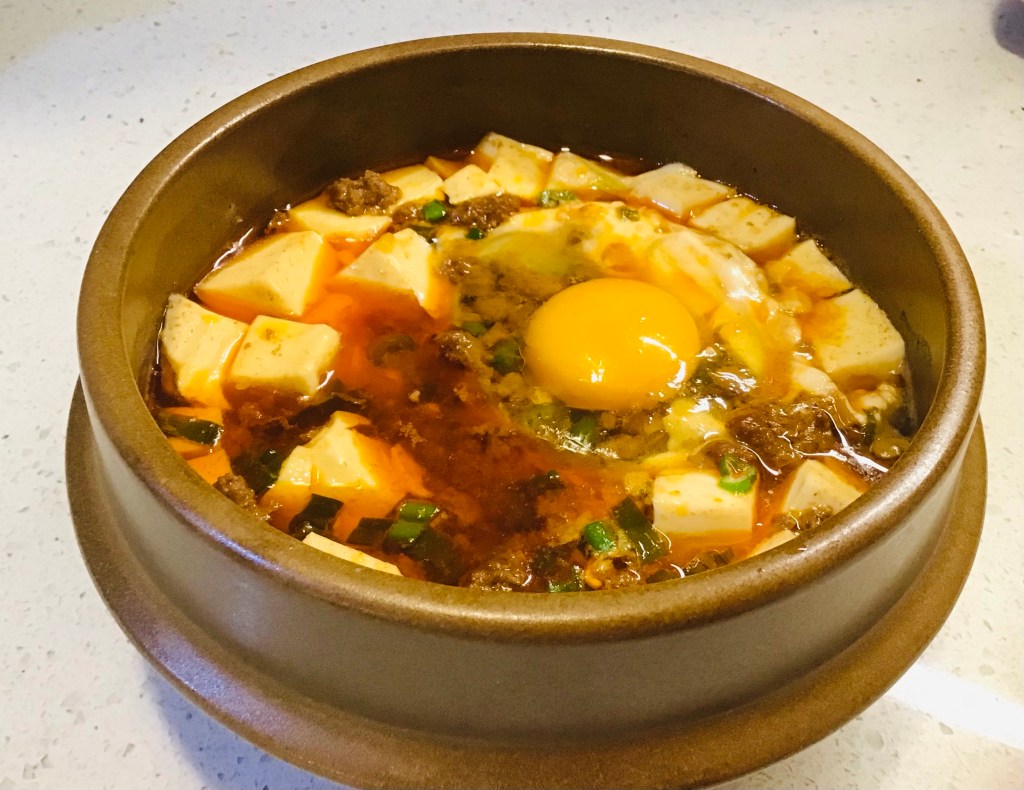 當我在忙碌的夜晚,為全家人煮豆腐鍋時,我會選擇煮成一大鍋,最後打 3 個蛋在上面。雖然不是完美呈現,但仍舊好看又好吃。在煮”升級版“豆腐鍋時,除了海鮮外,也可以加入牛肉片,豬肉片或雞肉片,也可以加入韓國泡菜,都很不錯。